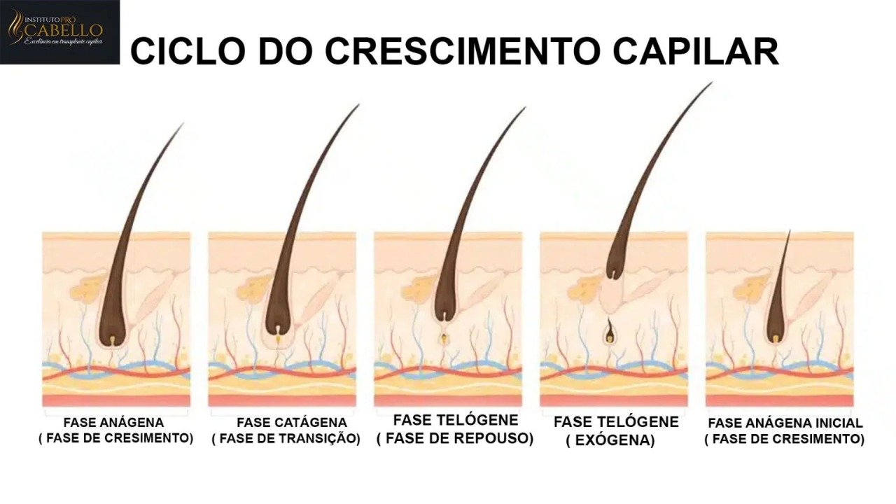 - Telógena (fase de repouso): Nesta etapa, o cabelo para de crescer, permanecendo no folículo por alguns meses até cair, permitindo que um novo ciclo de crescimento se inicie.